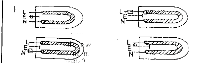 The diagrams above illustrate electrical connections to the element of an electric pressing iron.In which of the connections is the fuse correctly fixed?
