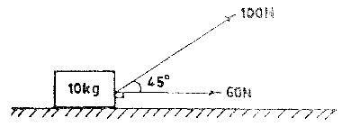 Two forces 100N and 60N act on an object of mass 10kg as illustrated in the diagram above. Neglecting friction, calculate the acceleration of the object.