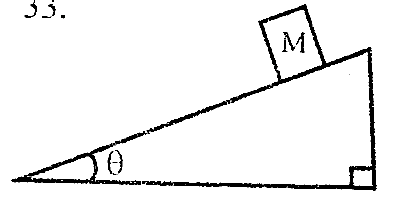 In the diagram illustrated a block of mass M is at rest on a plane inclined at an angle \(\theta\) to the horizontal. As \(\theta\) increases, the velocity ratio of the plane