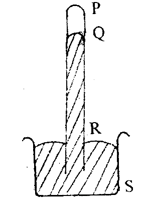 The diagram above illustrates a simple barometer. Which distance measures the atmospheric pressure?