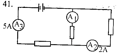 The circuit contains three ammeters A1, A2 and A3 with readings of A2 and A3 shown as indicated in the diagram. Determine the reading of A1.