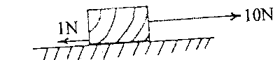 A block is acted upon by TWO horizontal forces as illustrated in the diagram above. The block accelerates at 1.5\(ms^{-2}\). Calculate the mass of the block.