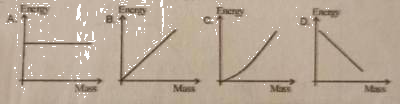Which of the following graphs gives the correct relationship between energy and mass when mass is converted to energy.